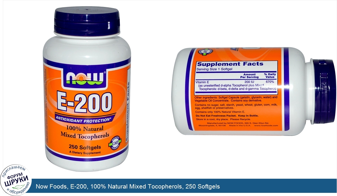 Друзья, если у вас есть отзыв/дополнение/комментарий/вопрос относительно Now Foods, E-200, 100% Natural Mixed Tocopherols, 250 Softgels - напишите его ответом в эту тему (это будет полезно всему сообществу в целом и вам в отдельности).