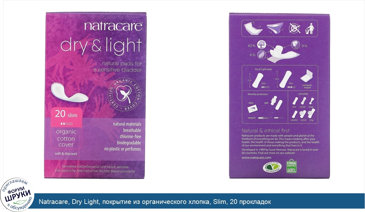 Друзья, если у вас есть отзыв/дополнение/комментарий/вопрос относительно Natracare, Dry Light, покрытие из органического хлопка, Slim, 20 прокладок - напишите его ответом в эту тему (это будет полезно всему сообществу в целом и вам в отдельности).