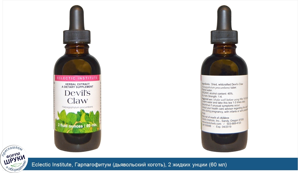 Друзья, если у вас есть отзыв/дополнение/комментарий/вопрос относительно Eclectic Institute, Гарпагофитум (дьявольский коготь), 2 жидких унции (60 мл) - напишите его ответом в эту тему (это будет полезно всему сообществу в целом и вам в отдельности).