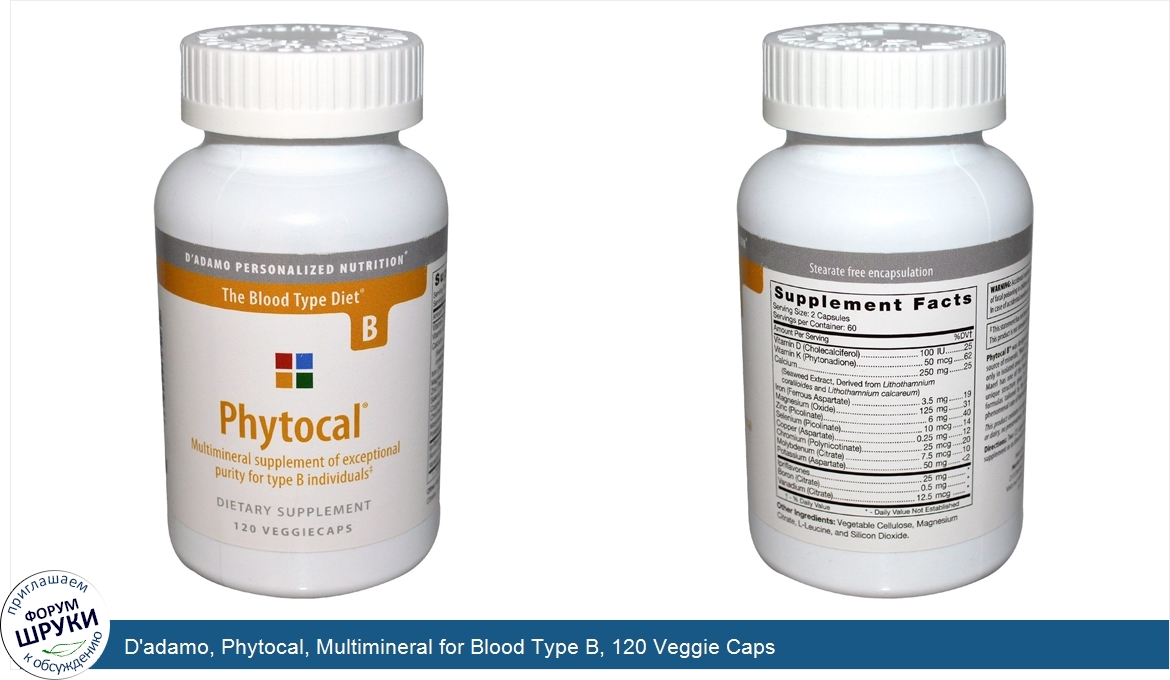 D'adamo, Phytocal, Multimineral for Blood Type B, 120 Veggie Caps