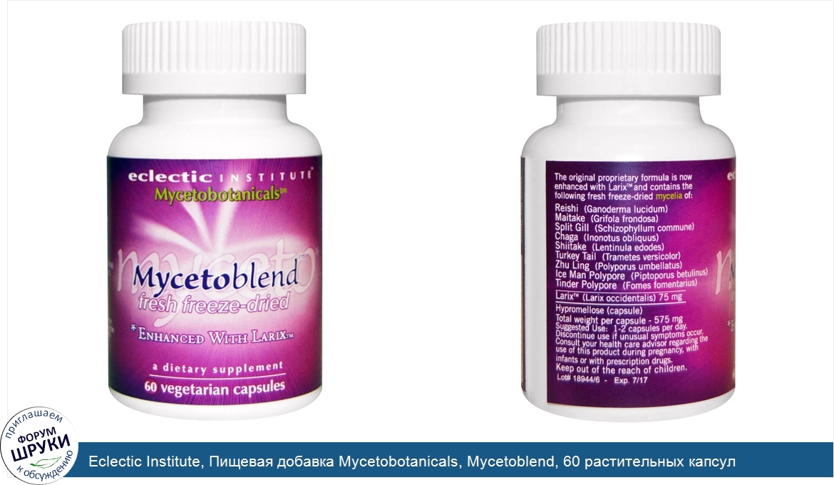 Друзья, если у вас есть отзыв/дополнение/комментарий/вопрос относительно Eclectic Institute, Пищевая добавка Mycetobotanicals, Mycetoblend, 60 растительных капсул - напишите его ответом в эту тему (это будет полезно всему сообществу в целом и вам в отдельности).