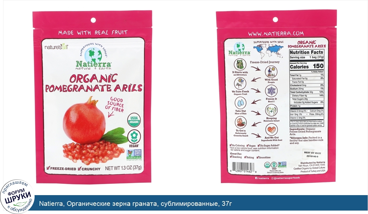 Друзья, если у вас есть отзыв/дополнение/комментарий/вопрос относительно Natierra, Органические зерна граната, сублимированные, 37г - напишите его ответом в эту тему (это будет полезно всему сообществу в целом и вам в отдельности).