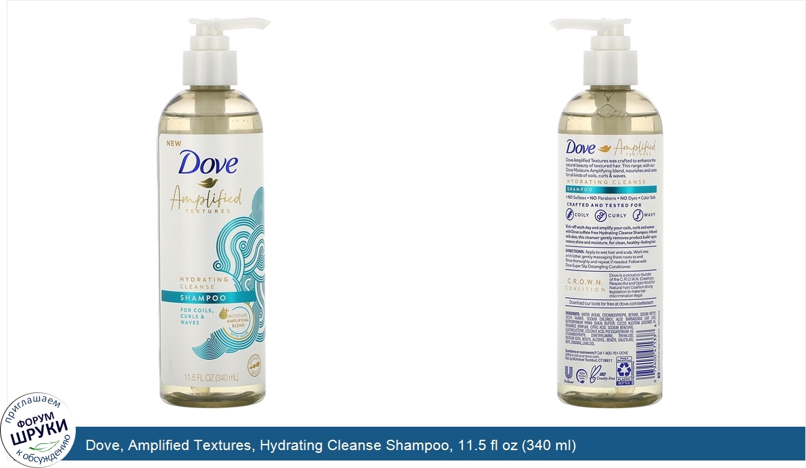 Друзья, если у вас есть отзыв/дополнение/комментарий/вопрос относительно Dove, Amplified Textures, Hydrating Cleanse Shampoo, 11.5 fl oz (340 ml) - напишите его ответом в эту тему (это будет полезно всему сообществу в целом и вам в отдельности).