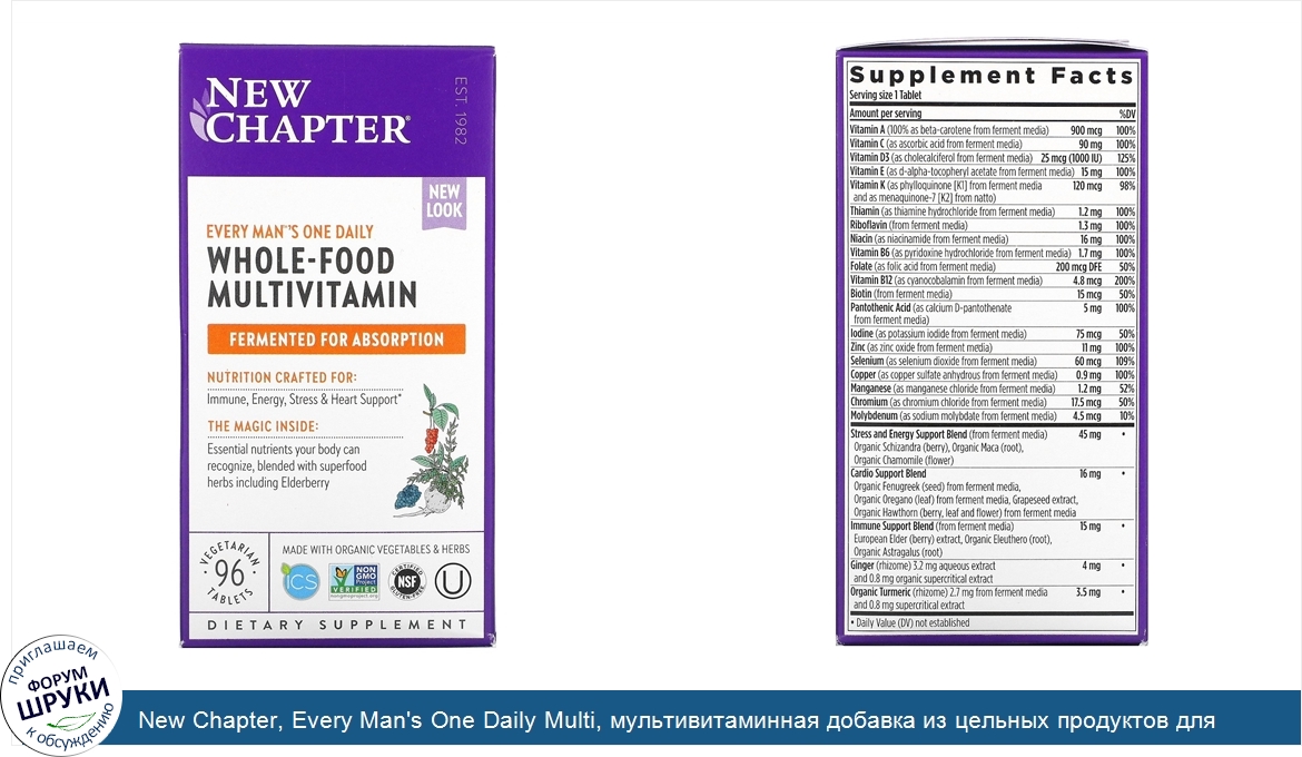 Друзья, если у вас есть отзыв/дополнение/комментарий/вопрос относительно New Chapter, Every Man's One Daily Multi, мультивитаминная добавка из цельных продуктов для мужчин, 96вегетарианских таблеток - напишите его ответом в эту тему (это будет полезно всему сообществу в целом и вам в отдельности).