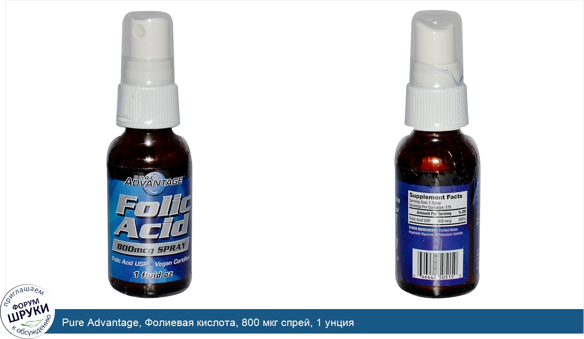 Друзья, если у вас есть отзыв/дополнение/комментарий/вопрос относительно Pure Advantage, Фолиевая кислота, 800 мкг спрей, 1 унция - напишите его ответом в эту тему (это будет полезно всему сообществу в целом и вам в отдельности).