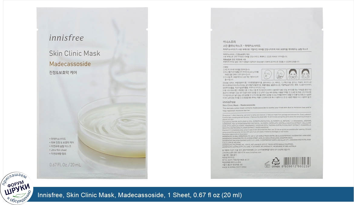 Друзья, если у вас есть отзыв/дополнение/комментарий/вопрос относительно Innisfree, Skin Clinic Mask, Madecassoside, 1 Sheet, 0.67 fl oz (20 ml) - напишите его ответом в эту тему (это будет полезно всему сообществу в целом и вам в отдельности).