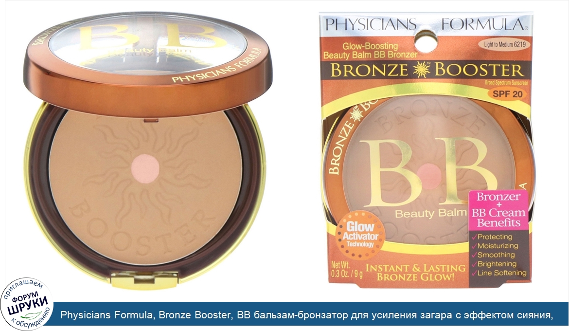 Physicians Formula, Bronze Booster, BB бальзам-бронзатор для усиления загара с эффектом сияния, SPF 20, От светлого к среднему, 0,3 унции (9 г)