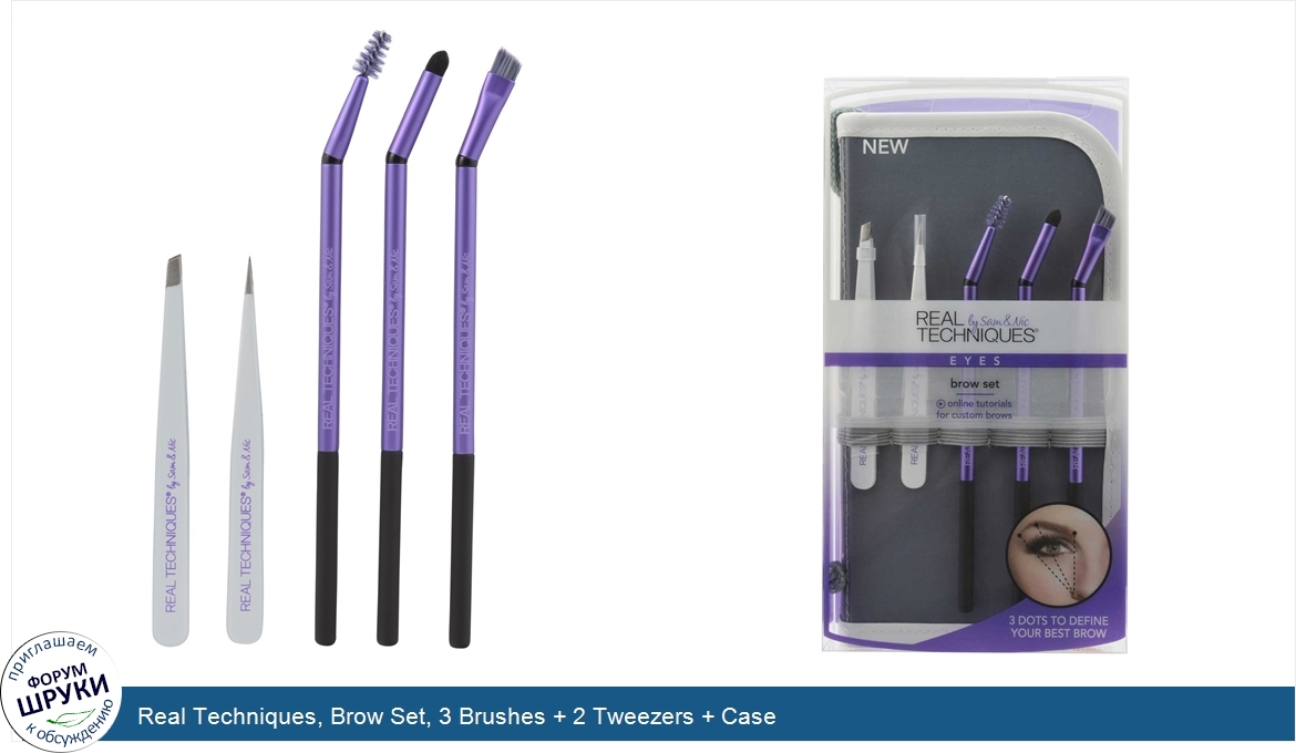 Real Techniques, Brow Set, 3 Brushes + 2 Tweezers + Case