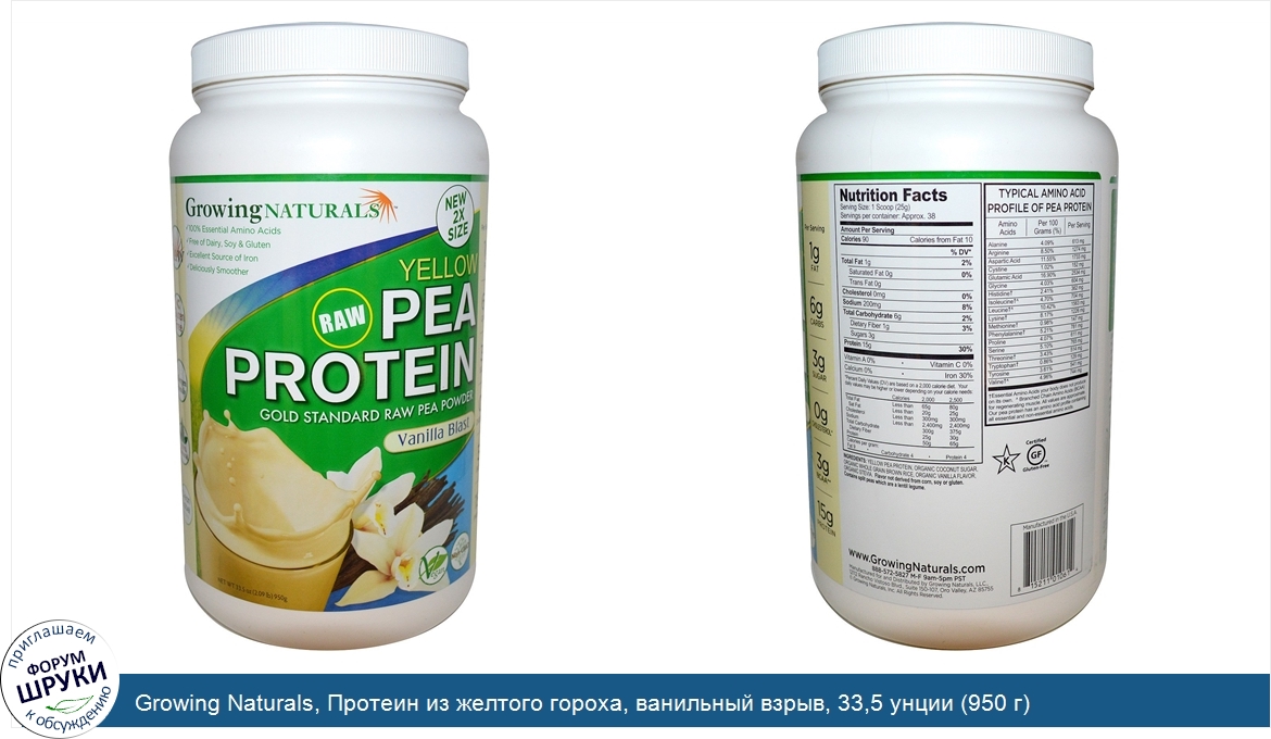 Growing Naturals, Протеин из желтого гороха, ванильный взрыв, 33,5 унции (950 г)