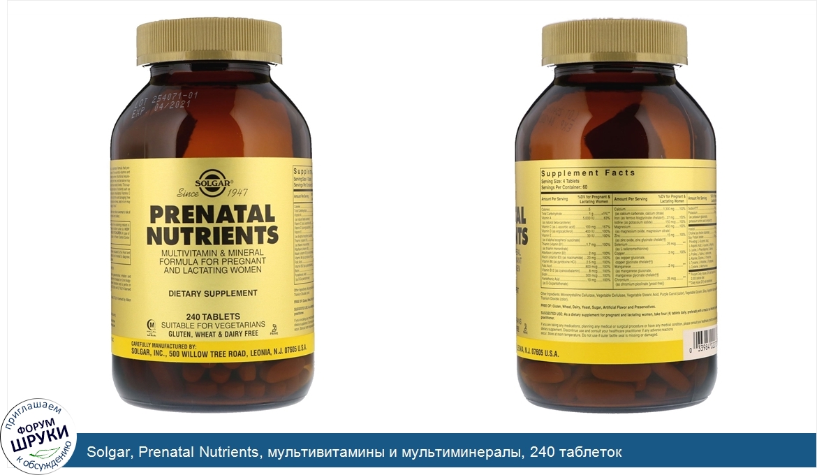 Друзья, если у вас есть отзыв/дополнение/комментарий/вопрос относительно Solgar, Prenatal Nutrients, мультивитамины и мультиминералы, 240 таблеток - напишите его ответом в эту тему (это будет полезно всему сообществу в целом и вам в отдельности).