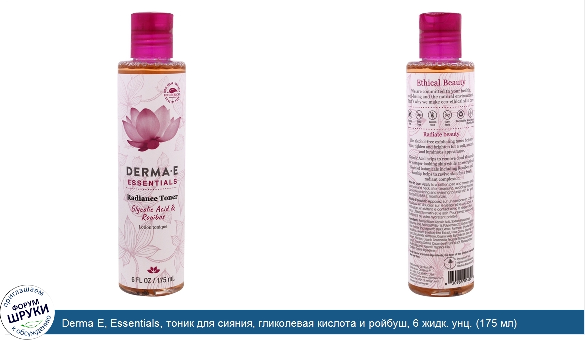 Друзья, если у вас есть отзыв/дополнение/комментарий/вопрос относительно Derma E, Essentials, тоник для сияния, гликолевая кислота и ройбуш, 6 жидк. унц. (175 мл) - напишите его ответом в эту тему (это будет полезно всему сообществу в целом и вам в отдельности).