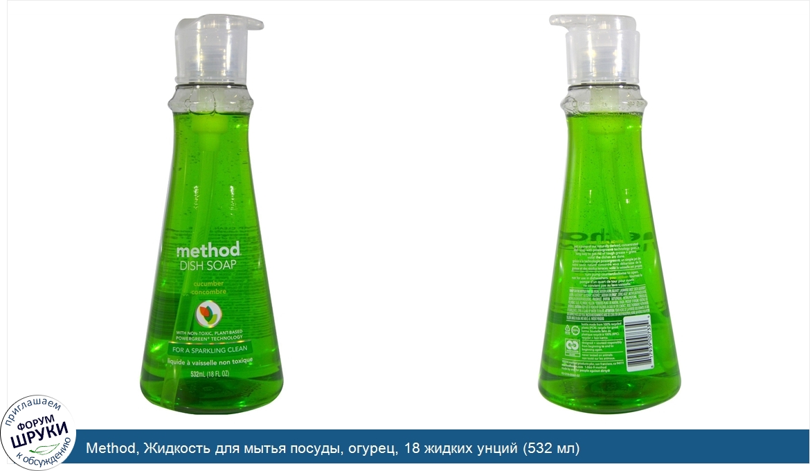 Друзья, если у вас есть отзыв/дополнение/комментарий/вопрос относительно Method, Жидкость для мытья посуды, огурец, 18 жидких унций (532 мл) - напишите его ответом в эту тему (это будет полезно всему сообществу в целом и вам в отдельности).