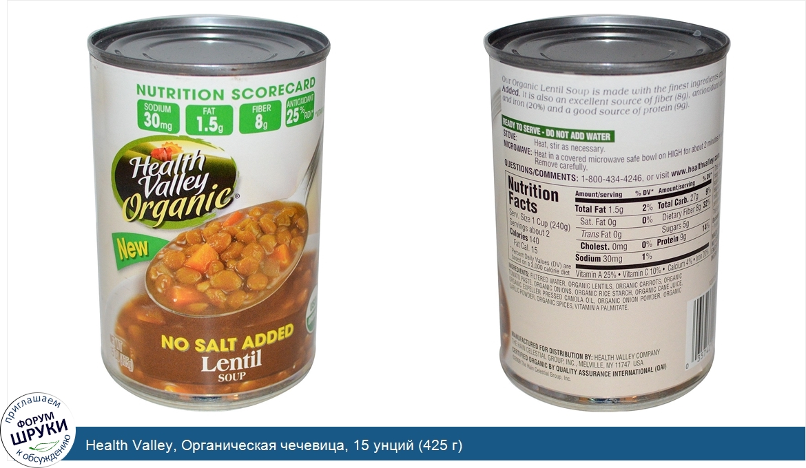 Друзья, если у вас есть отзыв/дополнение/комментарий/вопрос относительно Health Valley, Органическая чечевица, 15 унций (425 г) - напишите его ответом в эту тему (это будет полезно всему сообществу в целом и вам в отдельности).