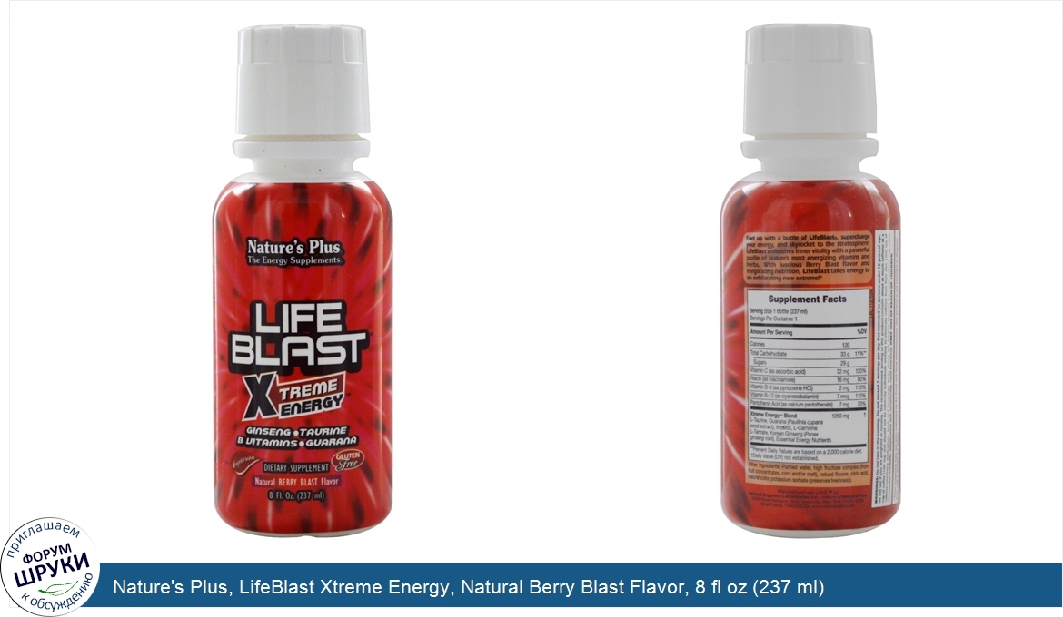 Друзья, если у вас есть отзыв/дополнение/комментарий/вопрос относительно Nature's Plus, LifeBlast Xtreme Energy, Natural Berry Blast Flavor, 8 fl oz (237 ml) - напишите его ответом в эту тему (это будет полезно всему сообществу в целом и вам в отдельности).