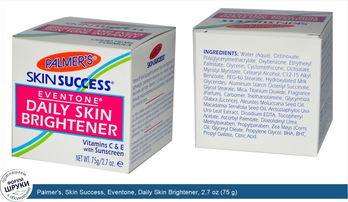 Друзья, если у вас есть отзыв/дополнение/комментарий/вопрос относительно Palmer's, Skin Success, Eventone, Daily Skin Brightener, 2.7 oz (75 g) - напишите его ответом в эту тему (это будет полезно всему сообществу в целом и вам в отдельности).