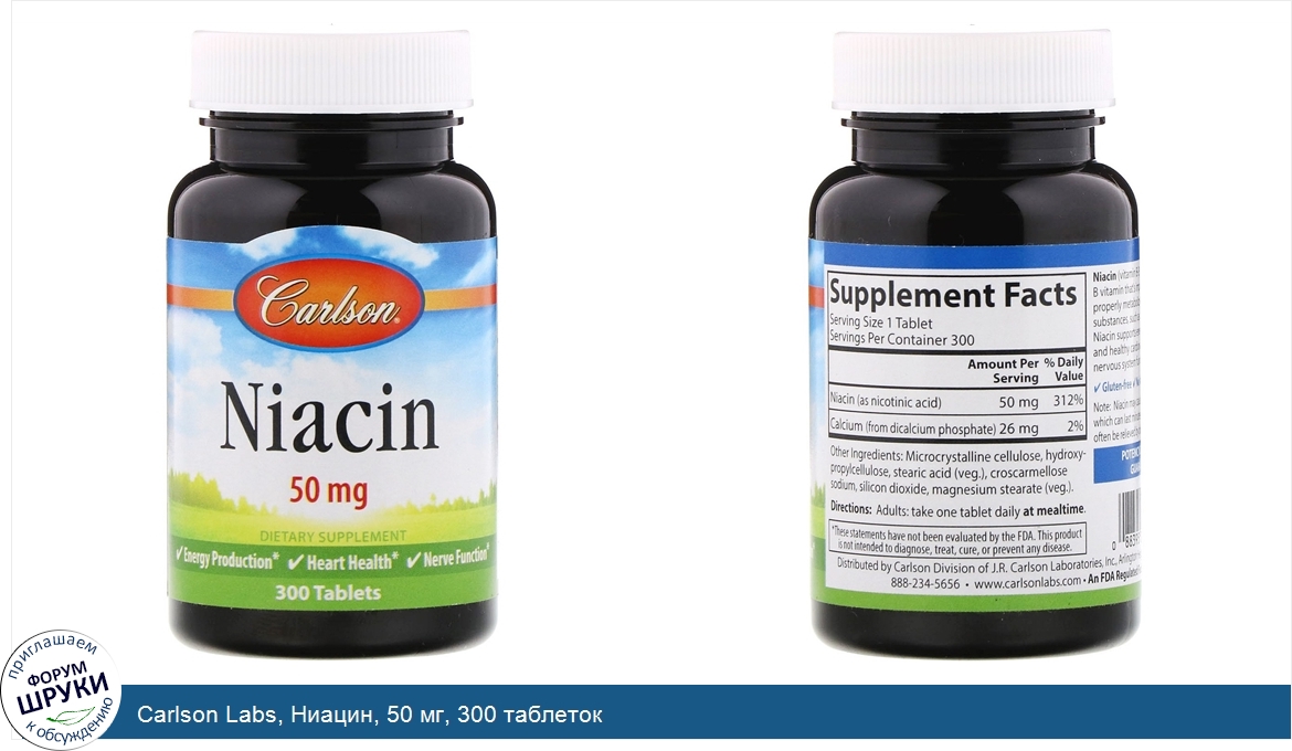 Carlson Labs, Ниацин, 50 мг, 300 таблеток