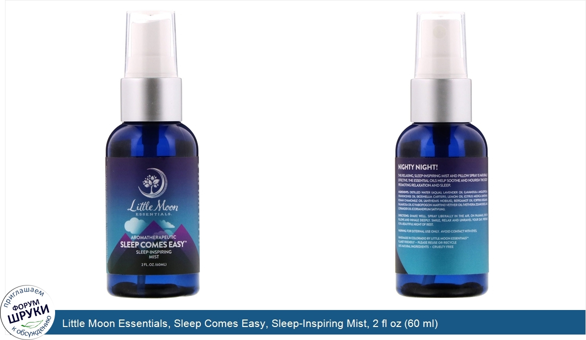 Друзья, если у вас есть отзыв/дополнение/комментарий/вопрос относительно Little Moon Essentials, Sleep Comes Easy, Sleep-Inspiring Mist, 2 fl oz (60 ml) - напишите его ответом в эту тему (это будет полезно всему сообществу в целом и вам в отдельности).