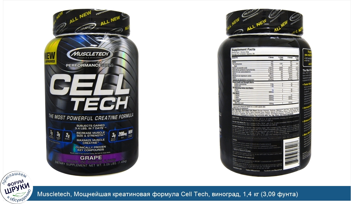 Друзья, если у вас есть отзыв/дополнение/комментарий/вопрос относительно Muscletech, Мощнейшая креатиновая формула Cell Tech, виноград, 1,4 кг (3,09 фунта) - напишите его ответом в эту тему (это будет полезно всему сообществу в целом и вам в отдельности).