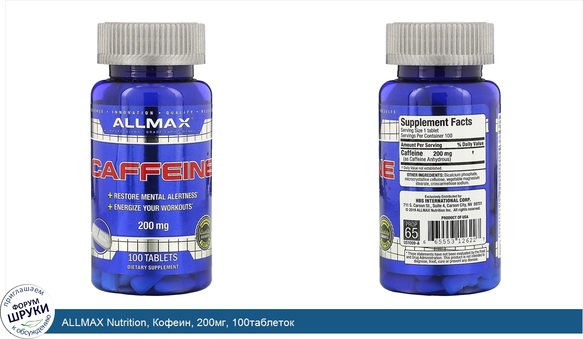 ALLMAX Nutrition, Кофеин, 200мг, 100таблеток