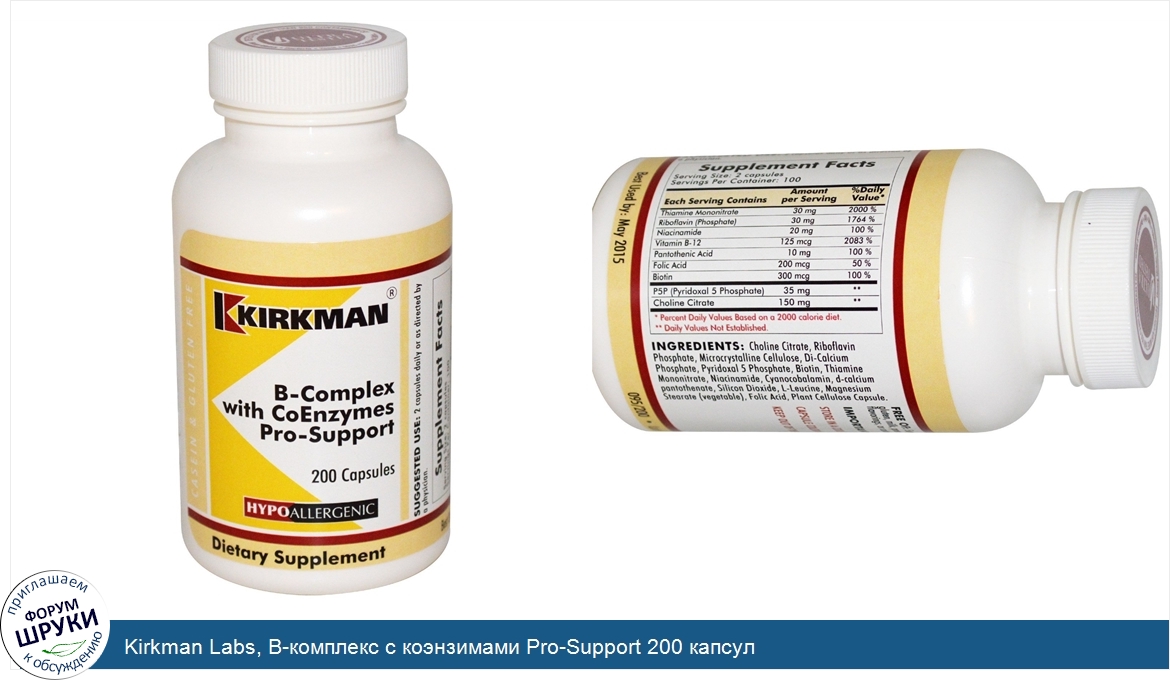 ru Kirkman Labs, B-комплекс с коэнзимами Pro-Support 200 капсул
