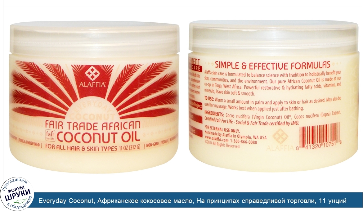 Друзья, если у вас есть отзыв/дополнение/комментарий/вопрос относительно Everyday Coconut, Африканское кокосовое масло, На принципах справедливой торговли, 11 унций (312 г) - напишите его ответом в эту тему (это будет полезно всему сообществу в целом и вам в отдельности).