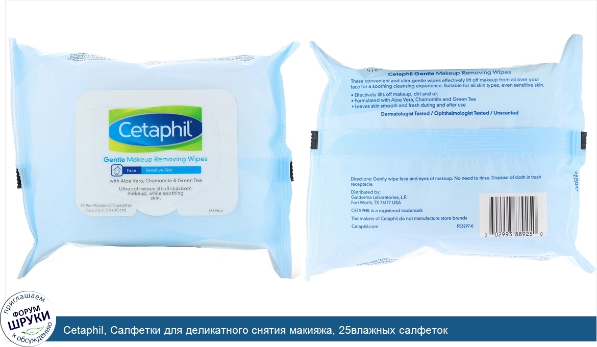 ru Cetaphil, Салфетки для деликатного снятия макияжа, 25влажных салфеток