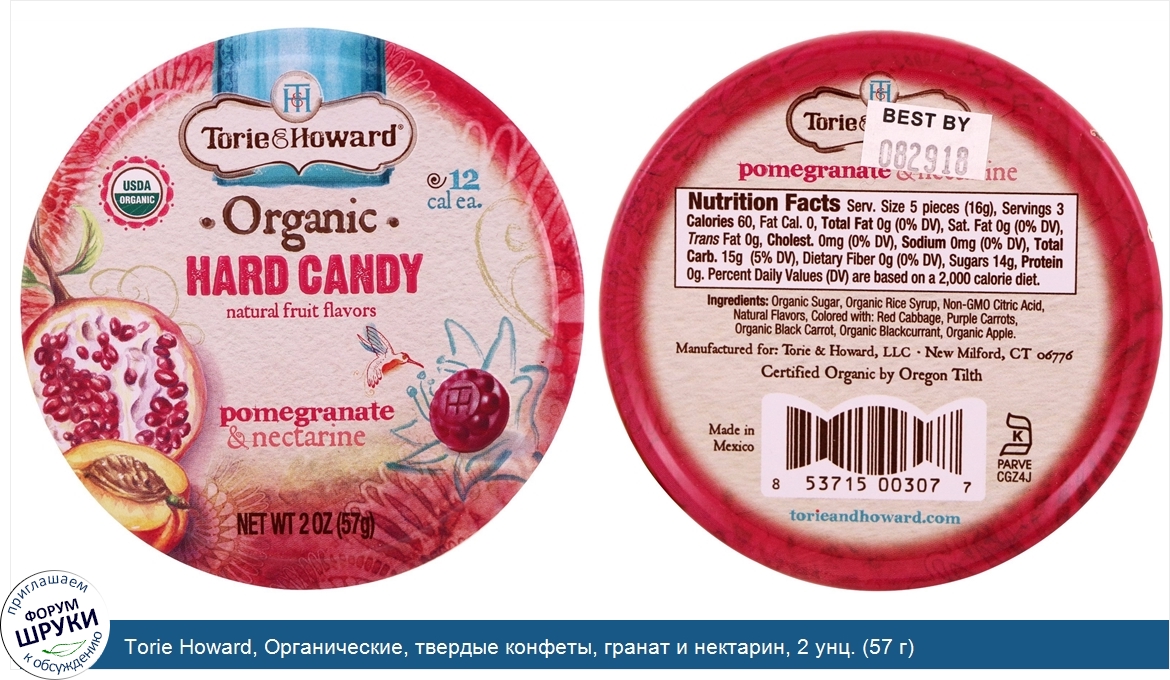 Torie Howard, Органические, твердые конфеты, гранат и нектарин, 2 унц. (57 г)