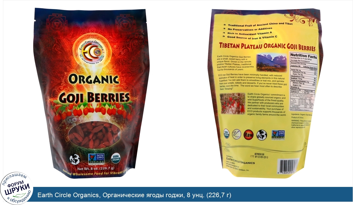 Друзья, если у вас есть отзыв/дополнение/комментарий/вопрос относительно Earth Circle Organics, Органические ягоды годжи, 8 унц. (226,7 г) - напишите его ответом в эту тему (это будет полезно всему сообществу в целом и вам в отдельности).