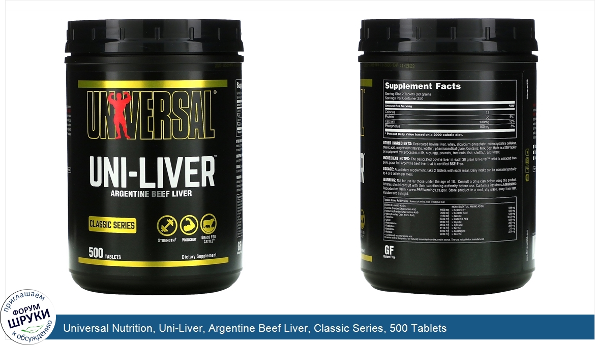 [DESCRIPT]. Strength. Workout. Grass Fed Cattle. Dietary Supplement. Gluten Free. Who We Are. Founded in 1977, we are a family-run company that has been formulating and manufacturing proven nutritional products for dedicated athletes. Our products are found in over 90 countries around the world. Classic Series. Since the 70s. we've been dedicated to making some of the finest nutritional products for world-class bodybuilders. Today, the new Classic Series still represents our steadfast commitment to those individuals seeking to achieve strength and perfection in the gym. Uni-Lever. Uni-Lever. ™. is perhaps the most nutritionally-dense amino acid formula in the Universal line and possibly the world. Each 30 grain Uni-Liver. ™. tablet is packed with the highest quality, purest glandular substance derived from prized, grass-fed (hormone-free) Argentine beef. Uni-Liver. ™. contains a full spectrum of amino acids as well as other necessary and essential nutrients found only in liver. Natural Desiccated and Defatted Argentine Liver. Cold Processed for Absolute Purity. Sourced from Grass-Fed, Hormone-Free Cattle.[/DESCRIPT]... (описание дополняется)
