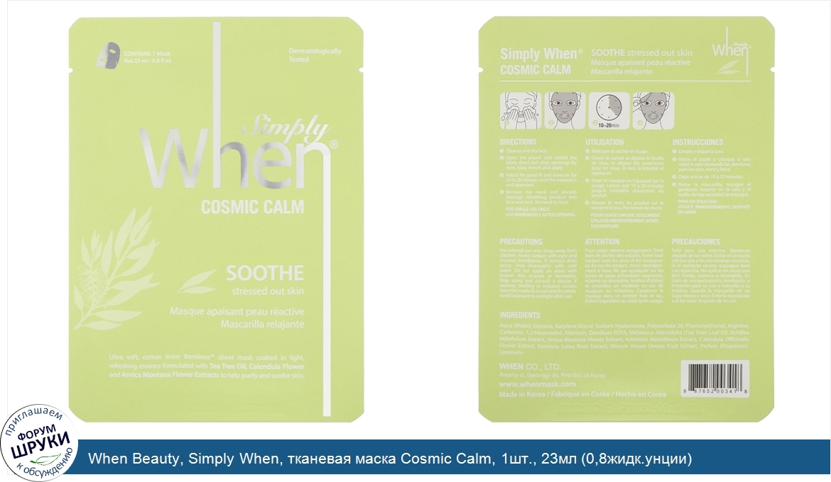 ru When Beauty, Simply When, тканевая маска Cosmic Calm, 1шт., 23мл (0,8жидк.унции)