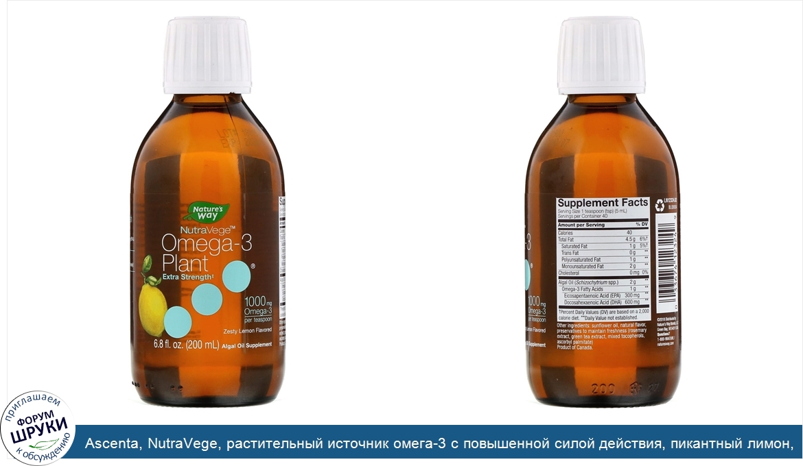 Друзья, если у вас есть отзыв/дополнение/комментарий/вопрос относительно Ascenta, NutraVege, растительный источник омега-3 с повышенной силой действия, пикантный лимон, 1000мг, 200мл (6,8жидк.унции) - напишите его ответом в эту тему (это будет полезно всему сообществу в целом и вам в отдельности).