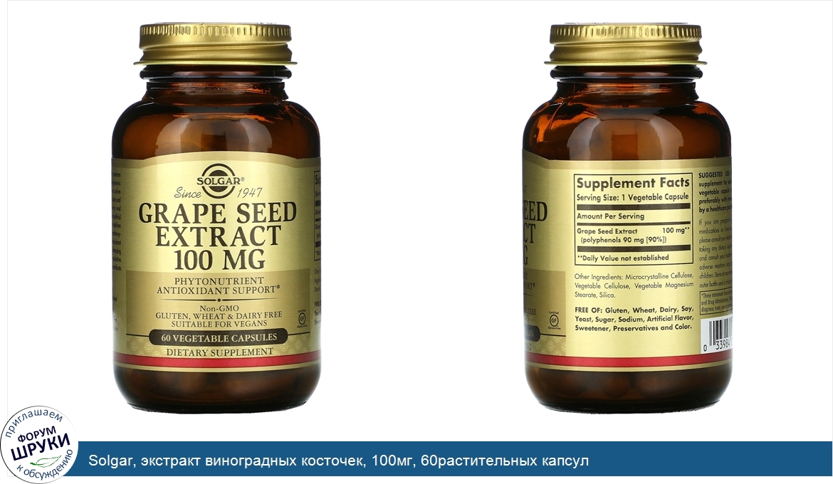ru Solgar, экстракт виноградных косточек, 100мг, 60растительных капсул