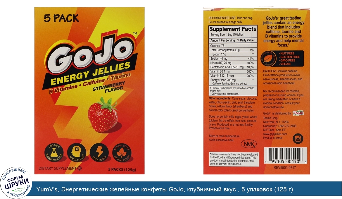 Друзья, если у вас есть отзыв/дополнение/комментарий/вопрос относительно YumV's, Энергетические желейные конфеты GoJo, клубничный вкус , 5 упаковок (125 г) - напишите его ответом в эту тему (это будет полезно всему сообществу в целом и вам в отдельности).
