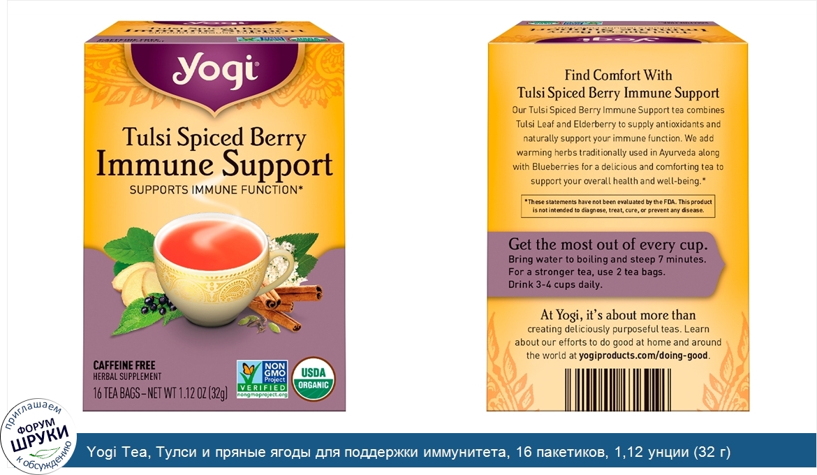 Друзья, если у вас есть отзыв/дополнение/комментарий/вопрос относительно Yogi Tea, Тулси и пряные ягоды для поддержки иммунитета, 16 пакетиков, 1,12 унции (32 г) - напишите его ответом в эту тему (это будет полезно всему сообществу в целом и вам в отдельности).