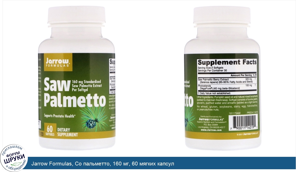 Друзья, если у вас есть отзыв/дополнение/комментарий/вопрос относительно Jarrow Formulas, Со пальметто, 160 мг, 60 мягких капсул - напишите его ответом в эту тему (это будет полезно всему сообществу в целом и вам в отдельности).