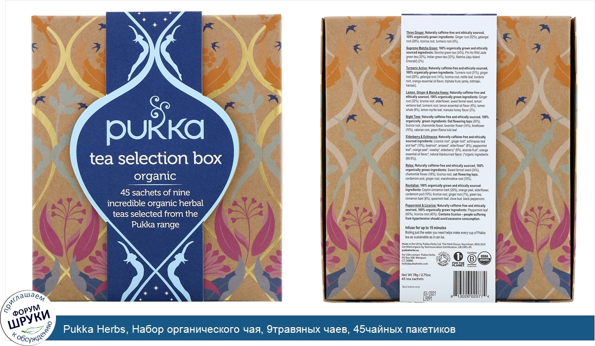 Pukka Herbs, Набор органического чая, 9травяных чаев, 45чайных пакетиков
