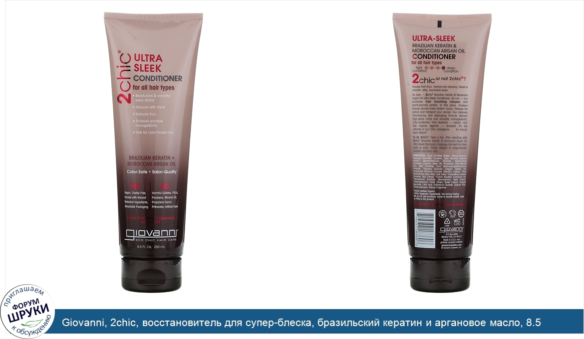 Giovanni, 2chic, восстановитель для супер-блеска, бразильский кератин и аргановое масло, 8.5 жидких унций (250 мл)