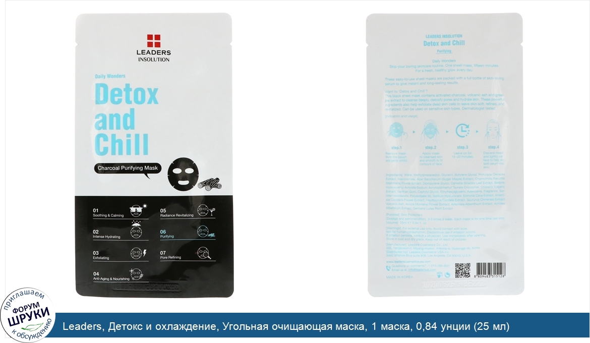 Друзья, если у вас есть отзыв/дополнение/комментарий/вопрос относительно Leaders, Детокс и охлаждение, Угольная очищающая маска, 1 маска, 0,84 унции (25 мл) - напишите его ответом в эту тему (это будет полезно всему сообществу в целом и вам в отдельности).
