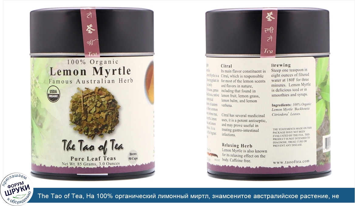 Друзья, если у вас есть отзыв/дополнение/комментарий/вопрос относительно The Tao of Tea, На 100% органический лимонный миртл, знамсенитое австралийское растение, не содержащее кофеина, 3 унц. (85 г) - напишите его ответом в эту тему (это будет полезно всему сообществу в целом и вам в отдельности).
