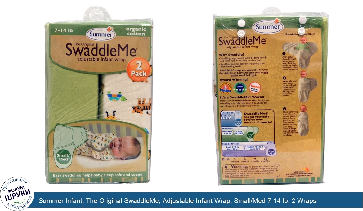 Друзья, если у вас есть отзыв/дополнение/комментарий/вопрос относительно Summer Infant, The Original SwaddleMe, Adjustable Infant Wrap, Small/Med 7-14 lb, 2 Wraps - напишите его ответом в эту тему (это будет полезно всему сообществу в целом и вам в отдельности).