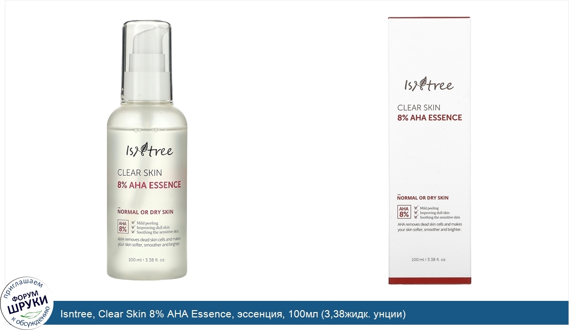 Isntree, Clear Skin 8% AHA Essence, эссенция, 100мл (3,38жидк. унции)