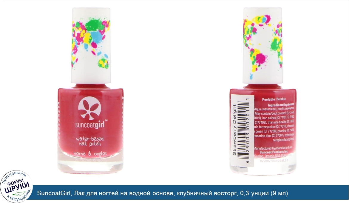 Друзья, если у вас есть отзыв/дополнение/комментарий/вопрос относительно SuncoatGirl, Лак для ногтей на водной основе, клубничный восторг, 0,3 унции (9 мл) - напишите его ответом в эту тему (это будет полезно всему сообществу в целом и вам в отдельности).