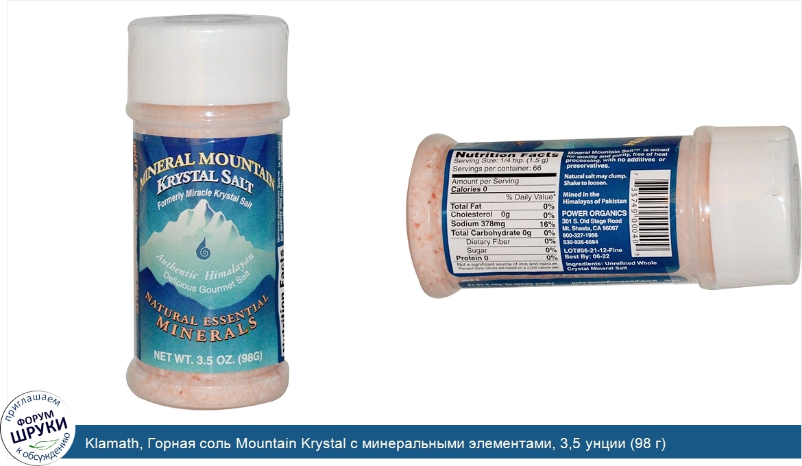 Друзья, если у вас есть отзыв/дополнение/комментарий/вопрос относительно Klamath, Горная соль Mountain Krystal с минеральными элементами, 3,5 унции (98 г) - напишите его ответом в эту тему (это будет полезно всему сообществу в целом и вам в отдельности).