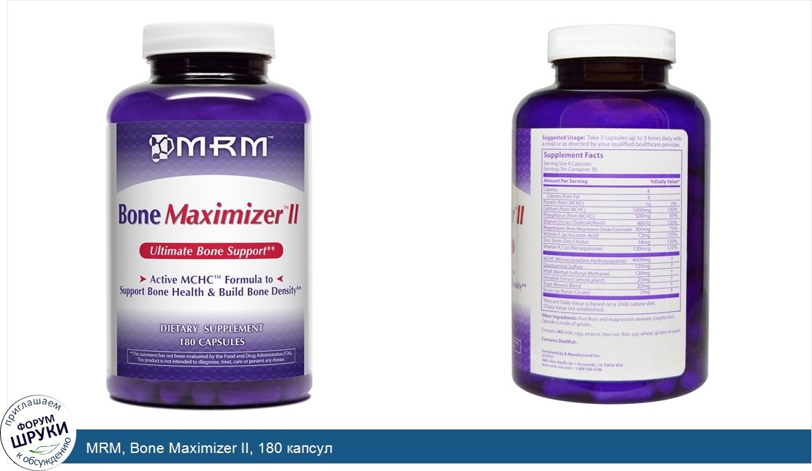 Друзья, если у вас есть отзыв/дополнение/комментарий/вопрос относительно MRM, Bone Maximizer II, 180 капсул - напишите его ответом в эту тему (это будет полезно всему сообществу в целом и вам в отдельности).