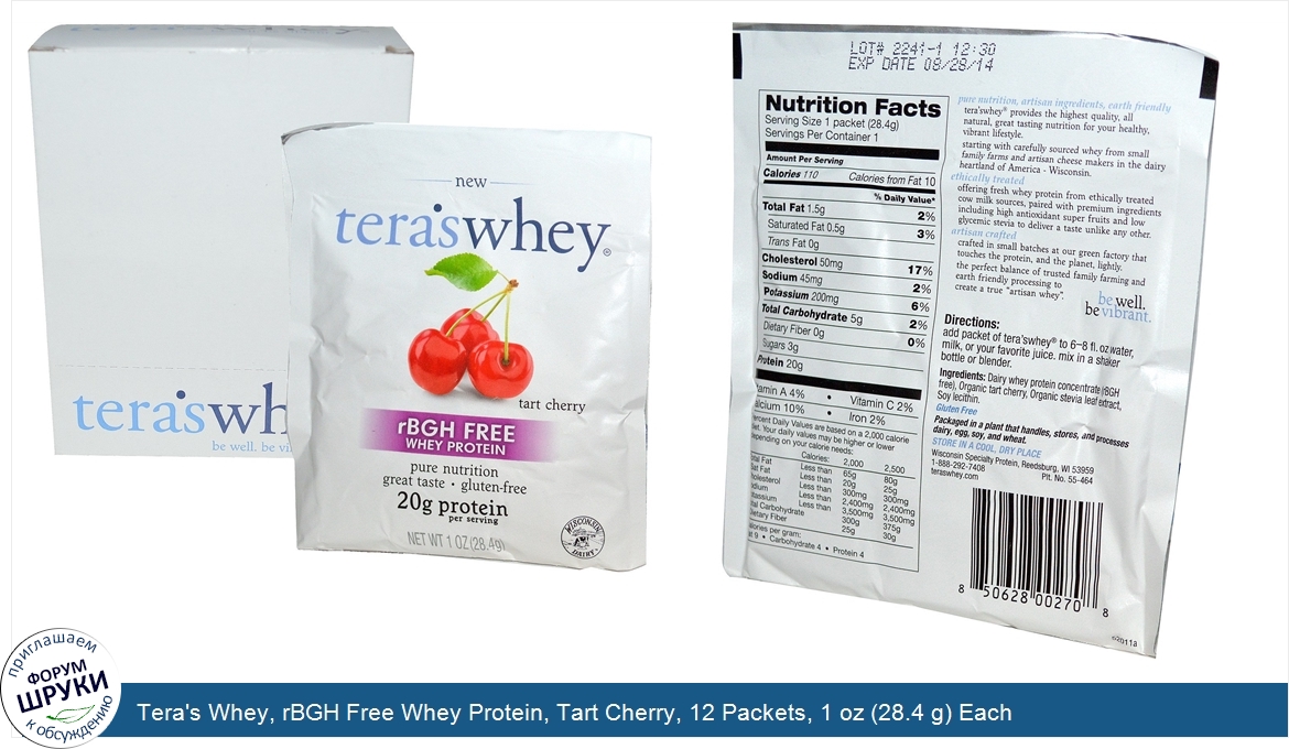 Tera's Whey, rBGH Free Whey Protein, Tart Cherry, 12 Packets, 1 oz (28.4 g) Each