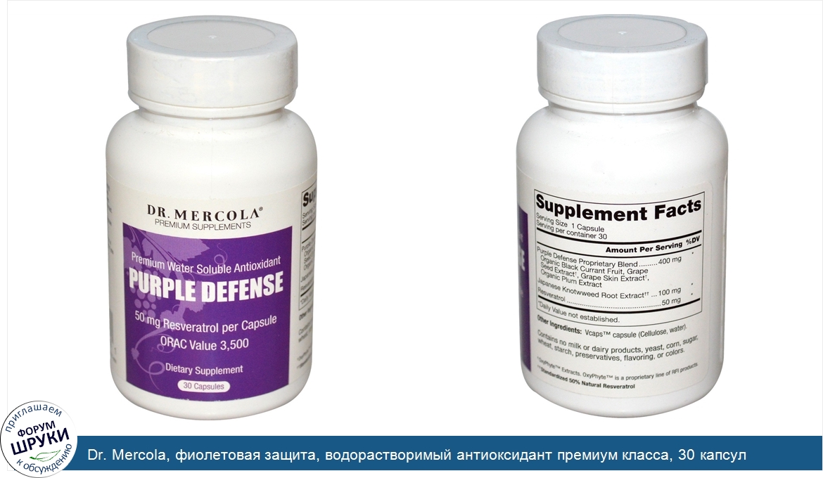 [DESCRIPT]Premium Supplements. 50 mg Resveratrol Per Capsule. ORAC Value 3,500. Dietary Supplement. With an overall 3,500 ORAC (Oxygen Radical Absorbance Capacity) per capsule, Purple Defense capsules provide a powerful natural antioxidant blend of Organic Black Currant, OxyPhyte Grape Seed Extract, OxyPhyte Grape Skin Extract, and Organic Plum Fruit Extract.[/DESCRIPT]... (описание дополняется)