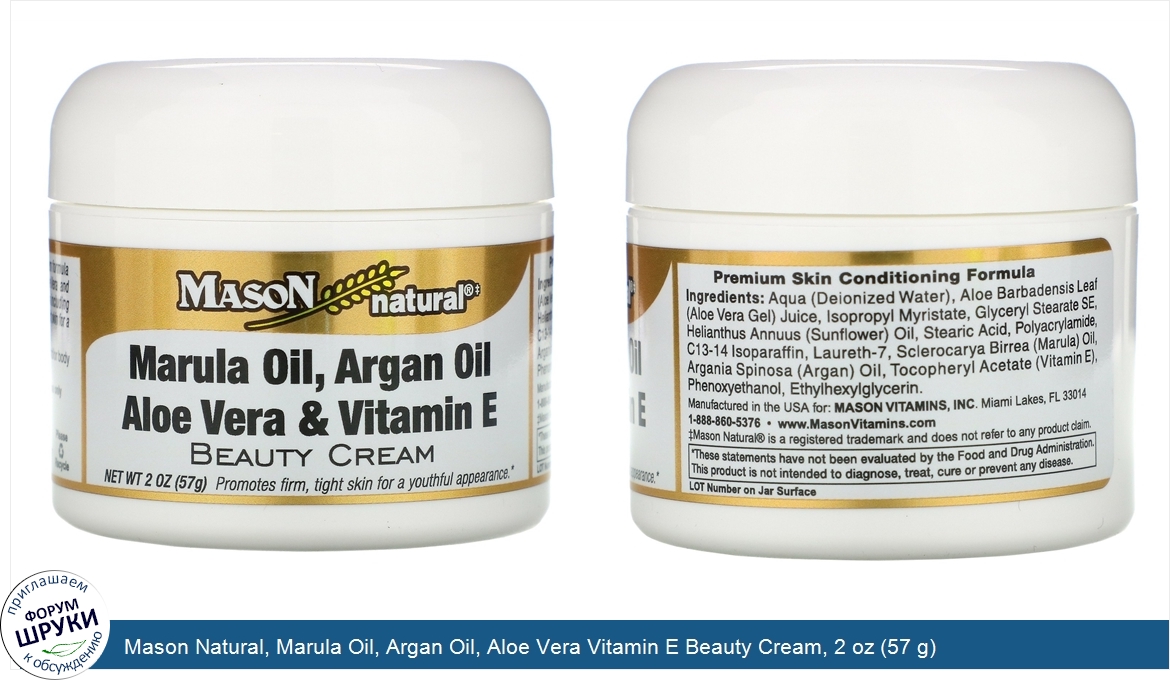 Promotes Firm, Tight Skin for a Youthful Appearance. Premium Skin Conditioning Formula. Mason's high quality anti-aging beauty cream formula that is infused with Marula Oil, Argan Oil, Aloe Vera and Vitamin E. It...
