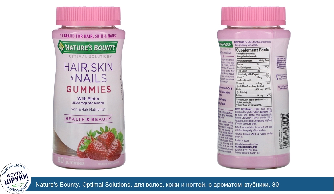 Друзья, если у вас есть отзыв/дополнение/комментарий/вопрос относительно Nature's Bounty, Optimal Solutions, для волос, кожи и ногтей, с ароматом клубники, 80 жевательных таблеток - напишите его ответом в эту тему (это будет полезно всему сообществу в целом и вам в отдельности).