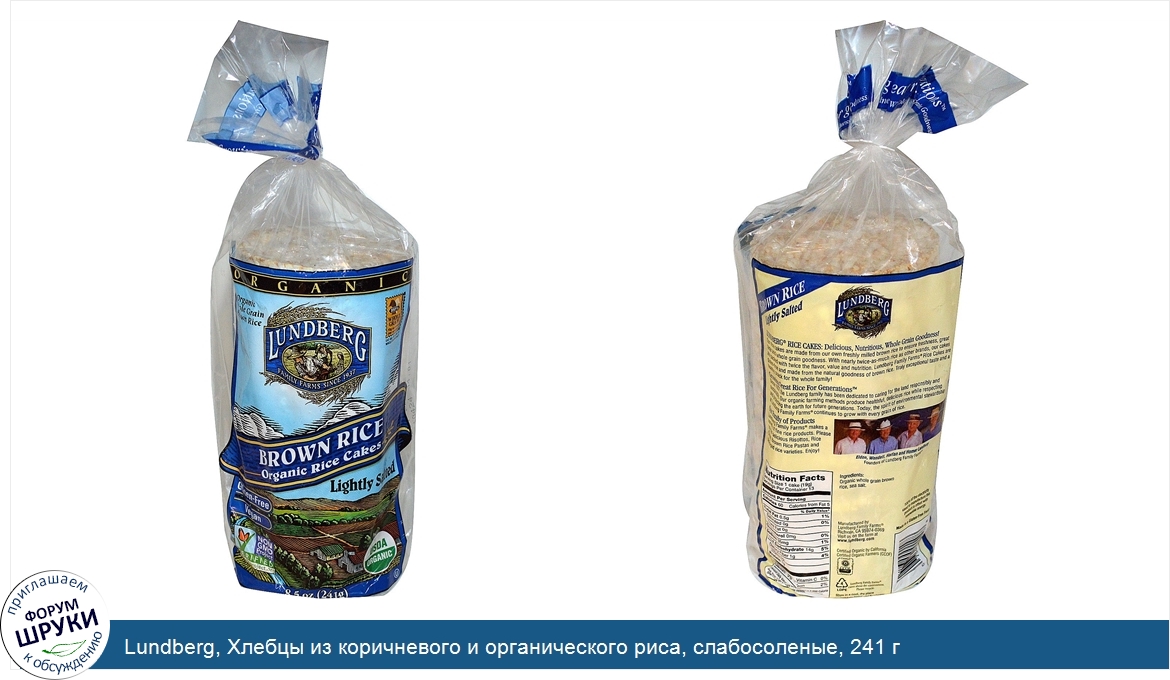 Друзья, если у вас есть отзыв/дополнение/комментарий/вопрос относительно Lundberg, Хлебцы из коричневого и органического риса, слабосоленые, 241 г - напишите его ответом в эту тему (это будет полезно всему сообществу в целом и вам в отдельности).