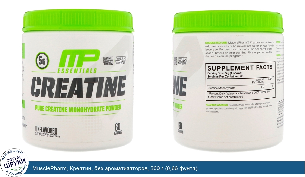 Друзья, если у вас есть отзыв/дополнение/комментарий/вопрос относительно MusclePharm, Креатин, без ароматизаторов, 300 г (0,66 фунта) - напишите его ответом в эту тему (это будет полезно всему сообществу в целом и вам в отдельности).